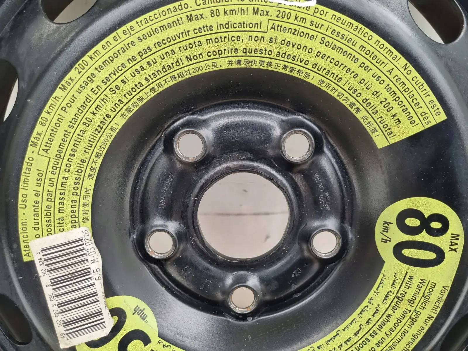 Audi Seat Vw Golf VI KOŁO DOJAZDOWE dojazdówka 125/70 R16 1K0601027S 5x112