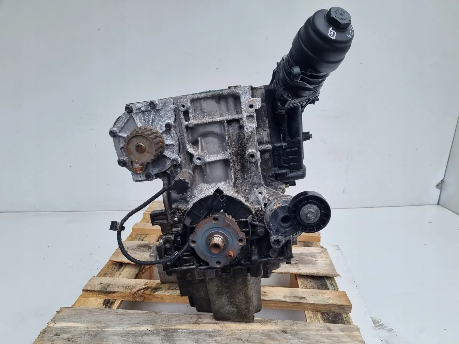 Oferujemy używany i oryginalny dół silnika - kompletny zestaw jak na zdjęciach, pochodzący z auta z uszkodzoną głowicą.