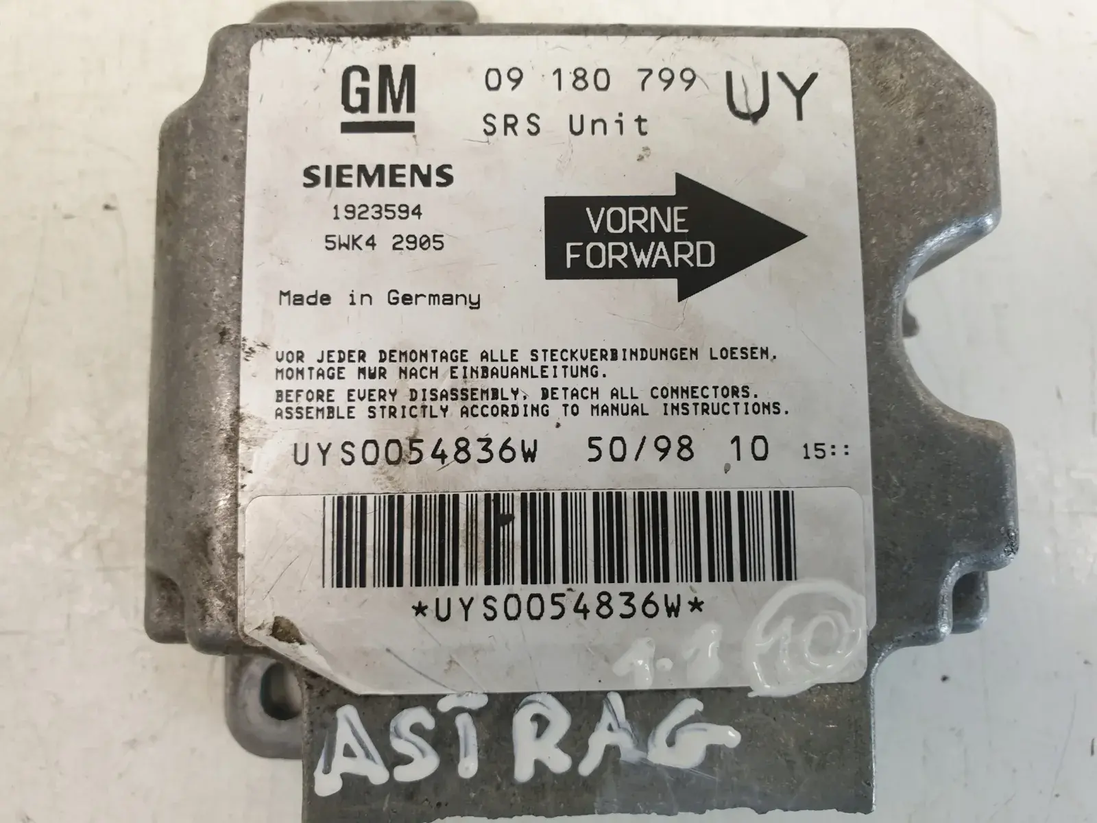 Opel Astra G II MODUŁ PODUSZEK AIRBAG 09180799