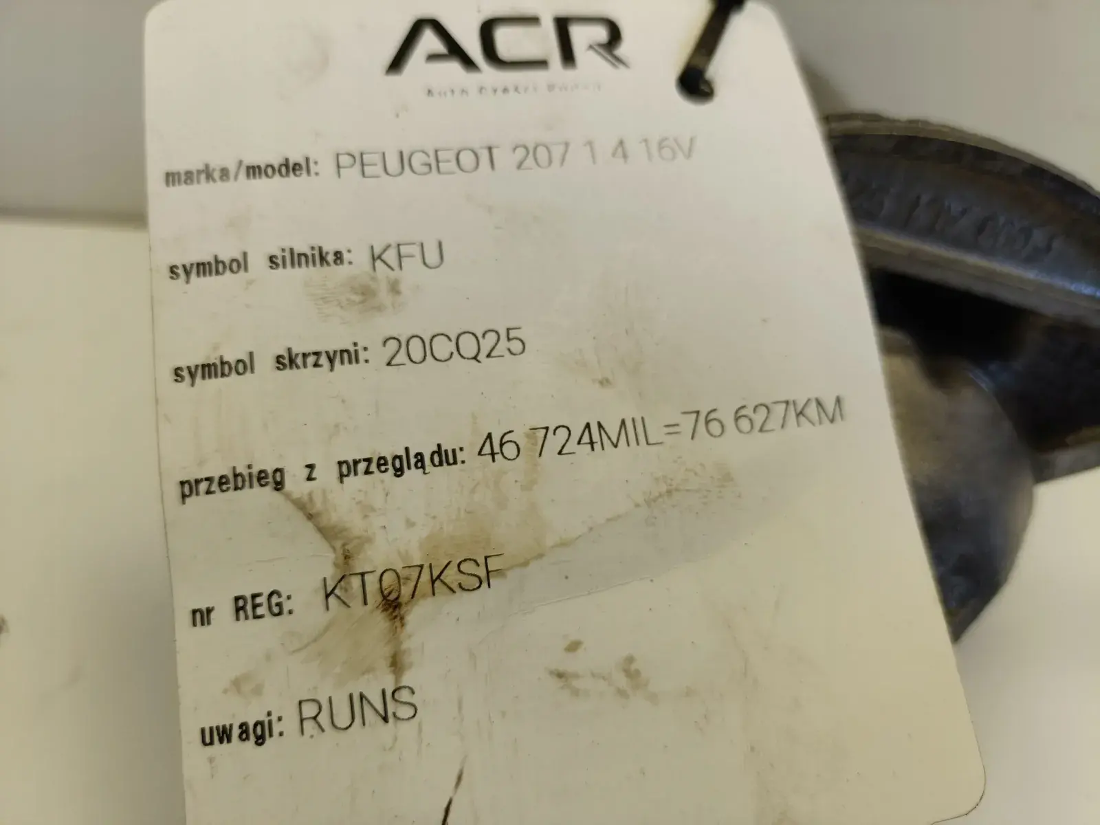 - nr rejestracyjny KT07KSF