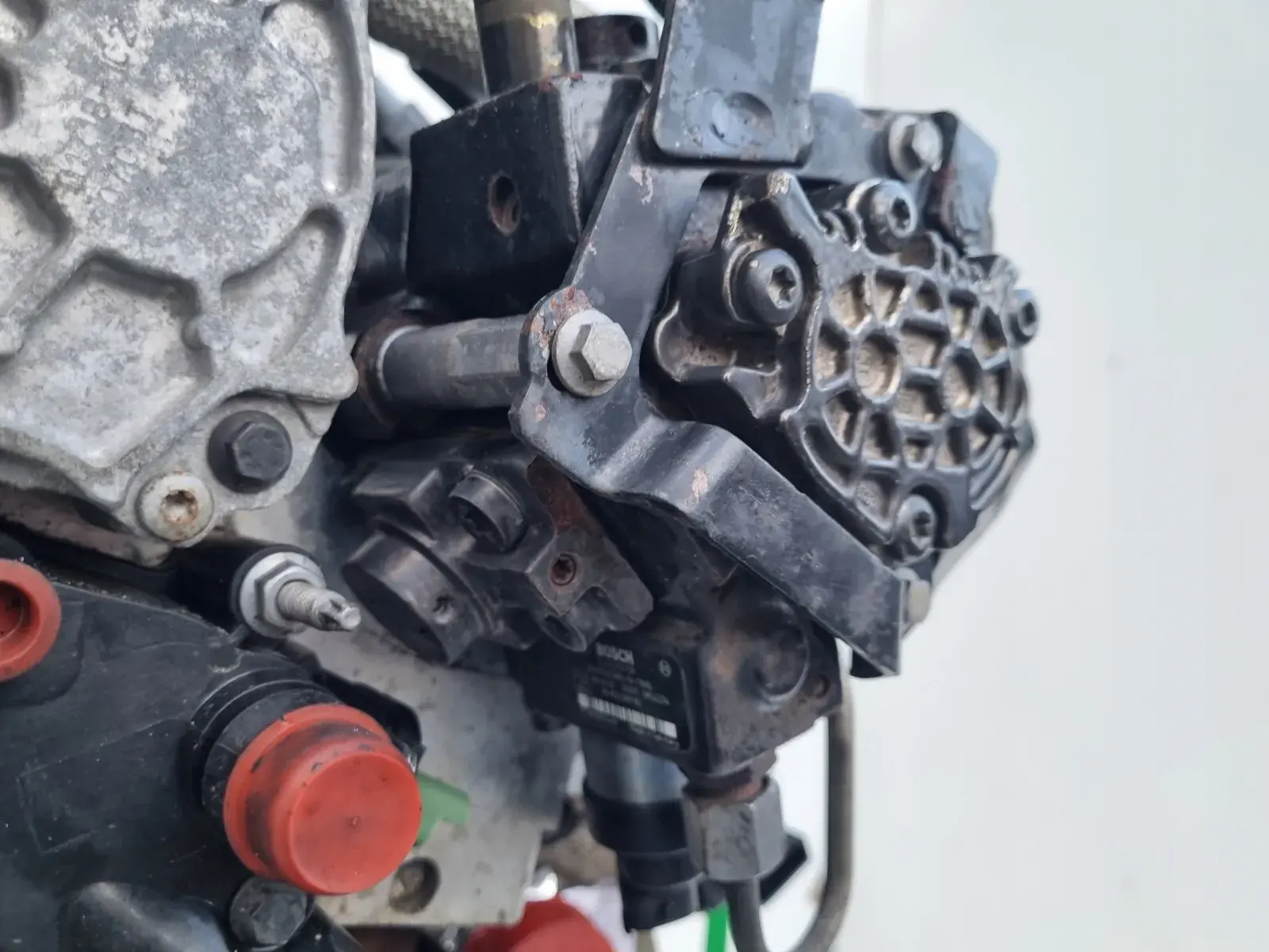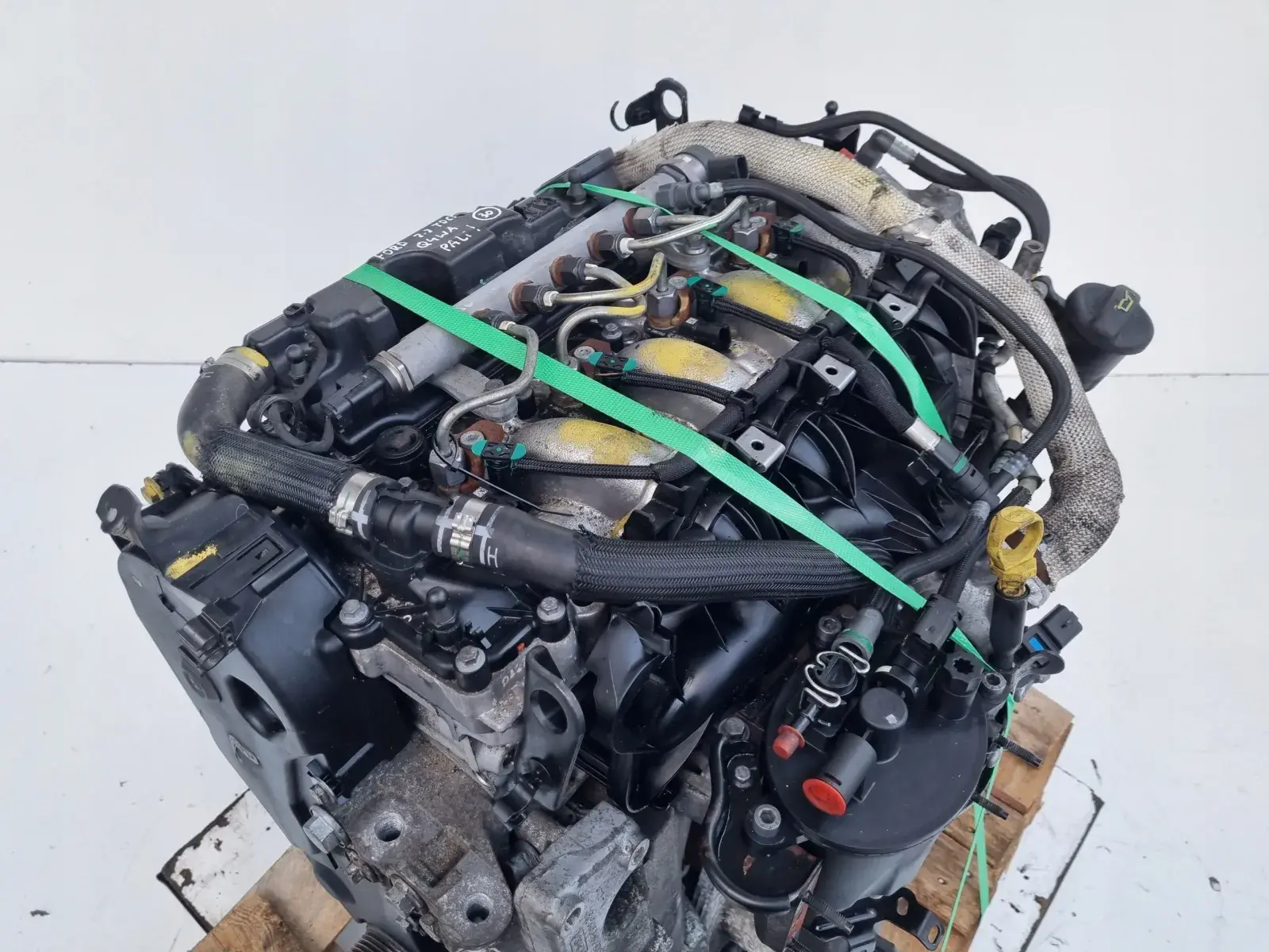 Silnik sprzedajemy w komplecie z pełnym osprzętem widocznym na zdjęciach takim jak układ paliwowy czyli komplet wtryskiwaczy, przewody paliwowe, listwa wtryskowa z czujnikami, pompa paliwa, kolektor ssący, kolektor wydechowy z turbosprężarką, podstawa alternatora, obudowa filtra oleju, koło pasowe wału, łapa silnika, pompa vacum, obudowa termostatu, przewody, czujniki itp
