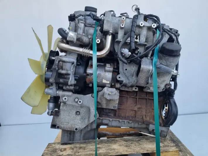 Silnik sprzedajemy w komplecie z pełnym osprzętem widocznym na zdjęciach takim jak układ paliwowy czyli komplet wtryskiwaczy, listwa wtryskowa z czujnikami, przewody paliwowe, pompa paliwa, kolektor ssący, kolektor wydechowy z turbosprężarką, wentylator z wiskozą, chłodniczka spalin, podstawa alternatora, obudowa filtra oleju, pompa vacum, koło zamachowe, łapy silnika, przewody, czujniki itp