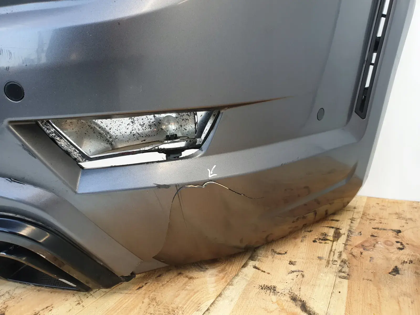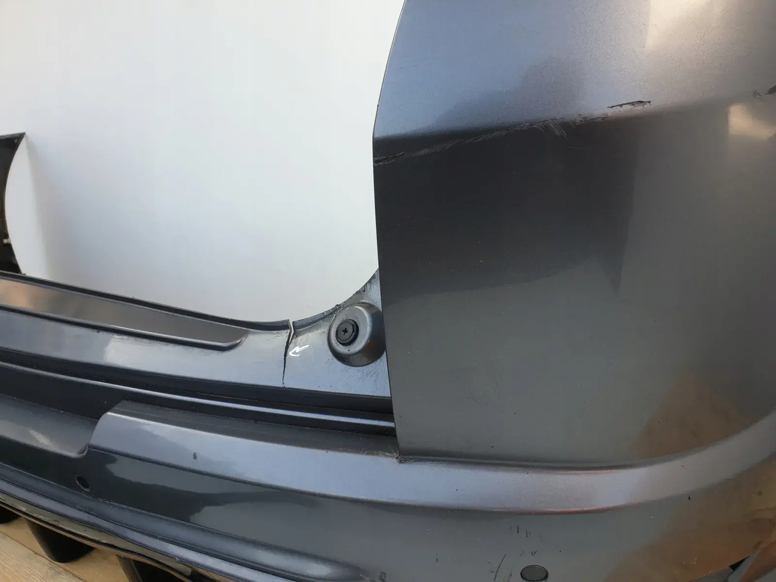 Zderzak posiada uszkodzenia widoczne na zdjęciach poniżej. Sprzedajemy go w komplecie z czujnikami parkowania oraz całą resztą ze zdjęć