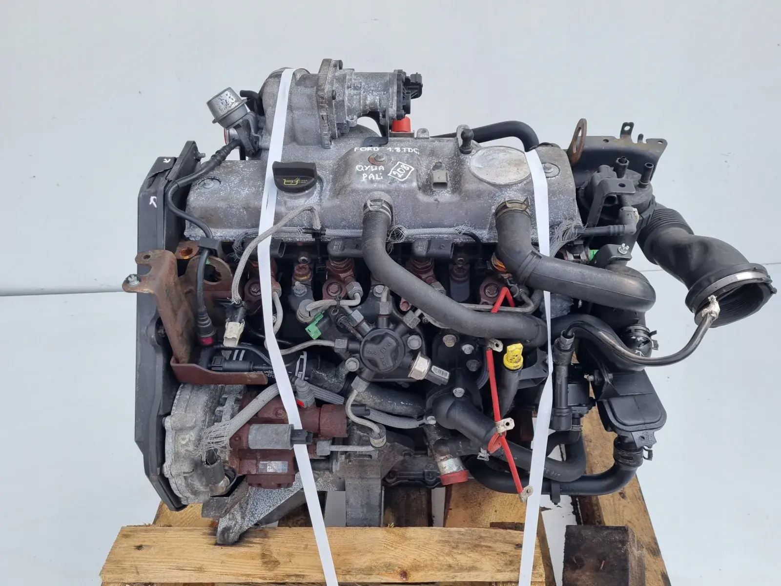Silnik sprzedajemy w komplecie z pełnym osprzętem widocznym na zdjęciach takim jak układ paliwowy czyli komplet wtryskiwaczy, pompa paliwa, listwa wtryskowa z czujnikami, przewody paliwowe, kolektor ssący, kolektor wydechowy z turbosprężarką itp - RESZTA GRATIS tych wszystkich drobnych części tj podstawa alternatora, koło pasowe wału, obudowa filtra oleju, obudowa termostatu, chłodniczka spalin, zawór EGR, przewody, czujniki itp
