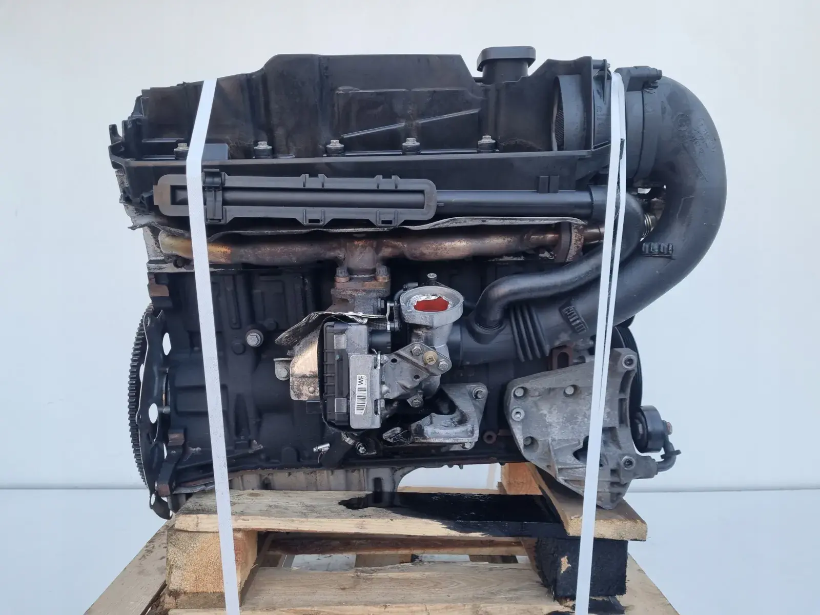 Silnik sprzedajemy w komplecie z pełnym osprzętem widocznym na zdjęciach takim jak układ paliwowy czyli komplet wtrysków, pompa paliwa, przewody paliwowe, kolektor ssący, kolektor wydechowy (lekko pęknięty - często spotykane w tych silnikach),turbosprężarka z nastawnikiem itp - RESZTA GRATIS tych wszystkich drobnych części tj podstawa alternatora, koło pasowe wału, obudowa filtra oleju, obudowa termostatu, chłodniczka spalin, zawór EGR, koło zamachowe, przewody, czujniki itp