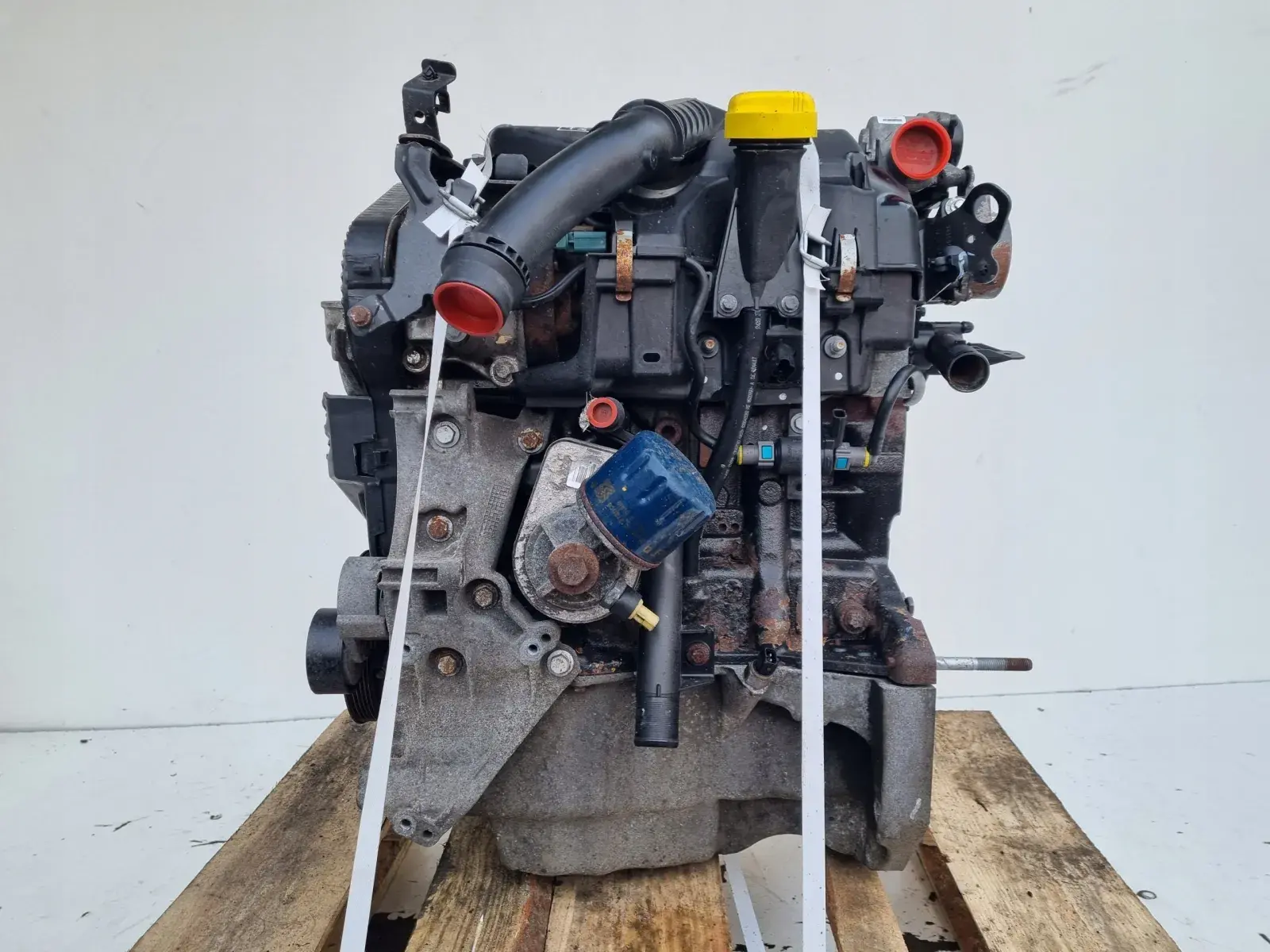 Silnik sprzedajemy w komplecie z pełnym osprzętem widocznym na zdjęciach takim jak układ paliwowy czyli komplet wtryskiwaczy, listwa wtryskowa z czujnikami, przewody paliwowe, pompa paliwa, kolektor ssący, kolektor wydechowy z turbosprężarką itp - RESZTA GRATIS tych wszystkich drobnych części tak jak podstawa alternatora, koło pasowe wału, łapa silnika, zawór EGR, pompa vacum, obudowa termostatu, przewody, czujniki itp