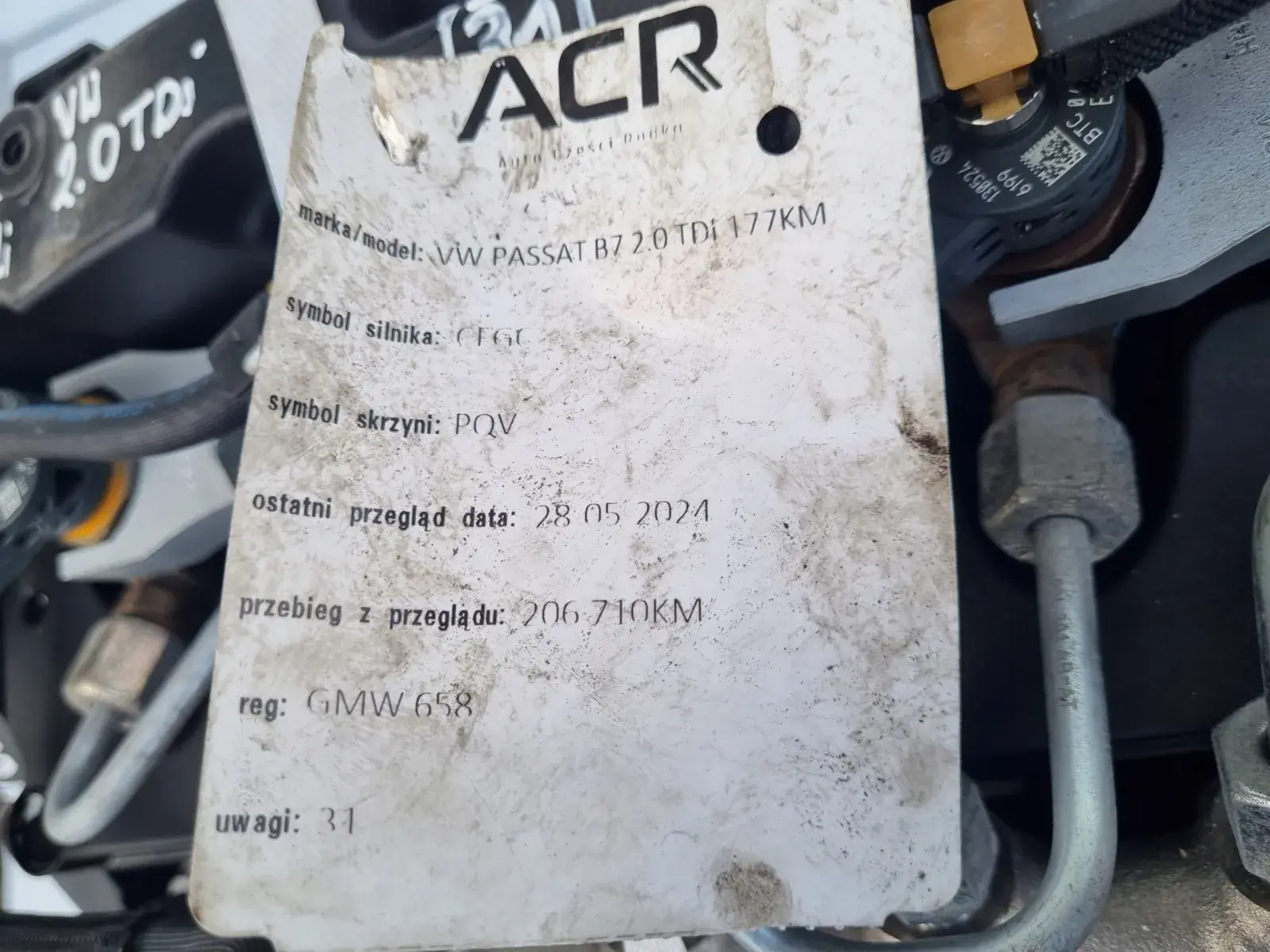 Silnik sprzedajemy w komplecie z pełnym osprzętem widocznym na zdjęciach takim jak układ paliwowy czyli komplet wtryskiwaczy, pompa paliwa, listwa wtryskowa z czujnikami, przewody paliwowe, kolektor ssący, kolektor wydechowy z turbosprężarką itp - RESZTA GRATIS tych wszystkich drobnych części tj podstawa alternatora, koło pasowe wału, obudowa filtra oleju, obudowa termostatu, chłodniczka spalin, zawór EGR, przewody, czujniki itp