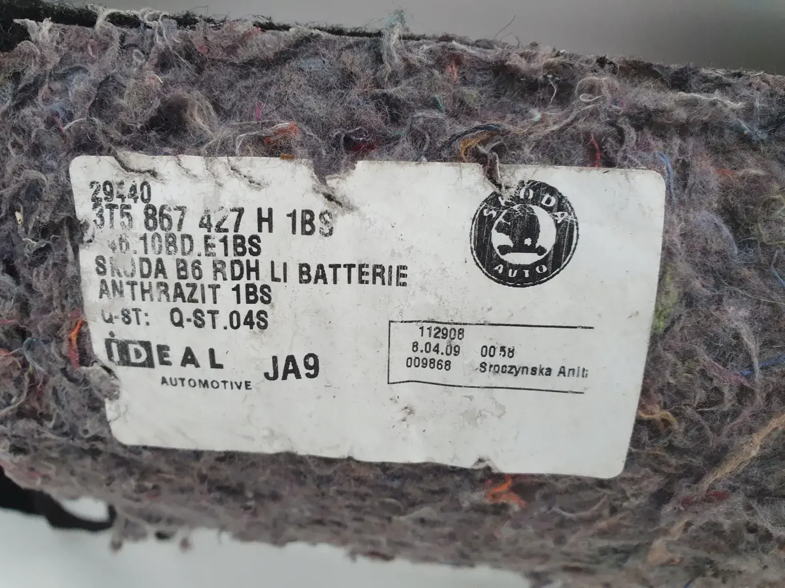 Skoda Superb II HTB LEWY BOCZEK BAGAŻNIKA Tapicerka LEWA TYLNA TYLNIA TYŁ